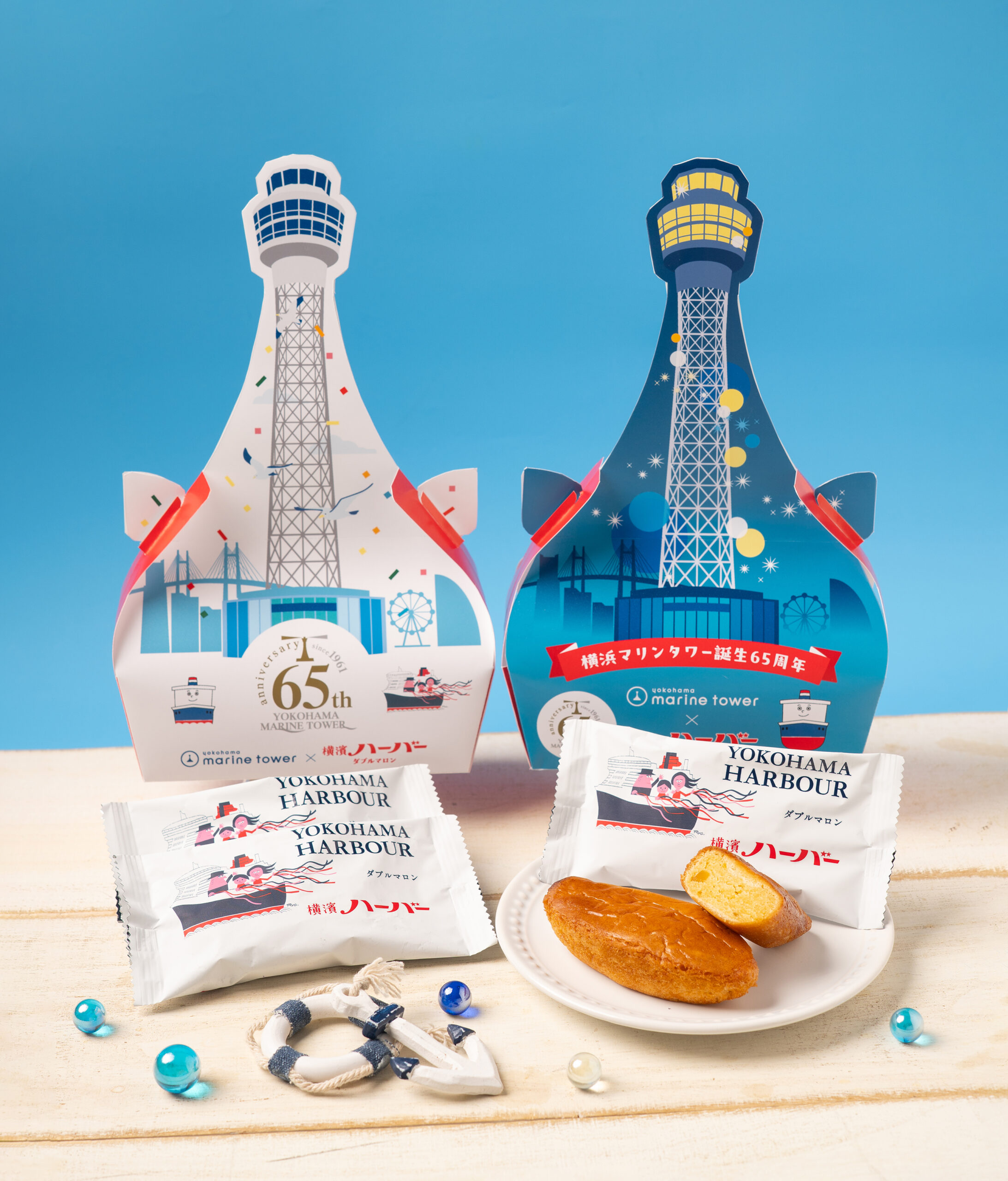 本商品は、横浜マリンタワーのリニューアルオープン時に大変ご好評をいただいたオリジナルパッケージを、65周年を記念した特別デザインとして新たにアレンジし、再登場するものです。パッケージには、横浜マリンタワーをメインモチーフに、港町・横浜らしい風景を描き、節目の年にふさわしい記念感あふれるデザインに仕上げました。中には、ありあけの定番商品「横濱ハーバー ダブルマロン」を3個詰め合わせました。