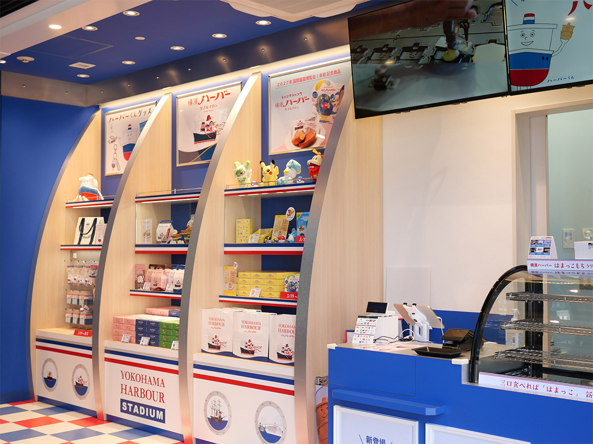 横濱ハーバー公式キャラクター「ハーバーくん」をモチーフにした出来たてスイーツ『ハーバーくんサンド』や、『横濱ハーバーはまっこもち クリーミー』、『ハーバーくんグッズ』など、「横濱ハーバースタジアム」ならではの限定商品を取り揃えた「横濱ハーバーの新たな世界を体験できる新業態店舗」です。